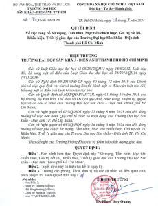 QUYẾT ĐỊNH CÔNG BỐ SỨ MẠNG, TẦM NHÌN, MỤC TIÊU CHIẾN LƯỢC, GIÁ TRỊ CỐT LÕI, KHẨU HIỆU, TRIẾT LÝ GIÁO DỤC CỦA TRƯỜNG ĐẠI HỌC SÂN KHẤU – ĐIỆN ẢNH THÀNH PHỐ HỒ CHÍ MINH