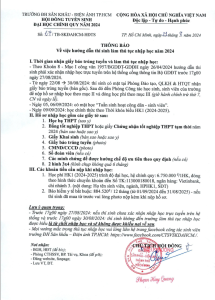 THÔNG BÁO HƯỚNG DẪN NHẬP HỌC ĐẠI HỌC CHÍNH QUY NĂM 2024