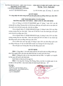 QUYẾT ĐỊNH VỀ VIỆC CÔNG NHẬN THÍ SINH TRÚNG TUYỂN CÓ ĐIỀU KIỆN TUYỂN SINH ĐẠI HỌC CHÍNH QUY NĂM 2024 PHƯƠNG THỨC 406: KẾT HỢP KẾT QUẢ HỌC TẬP CẤP THPT VỚI ĐIỂM THI NĂNG KHIẾU ĐỂ XÉT TUYỂN