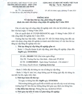 THÔNG BÁO VỀ VIỆC LÀM THỦ TỤC CẤP, PHÁT BẰNG TỐT NGHIỆP DÀNH CHO SINH VIÊN ĐƯỢC CÔNG NHẬN TỐT NGHIỆP ĐỢT 3 NĂM 2024